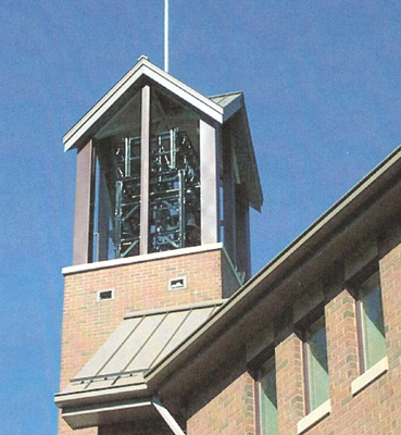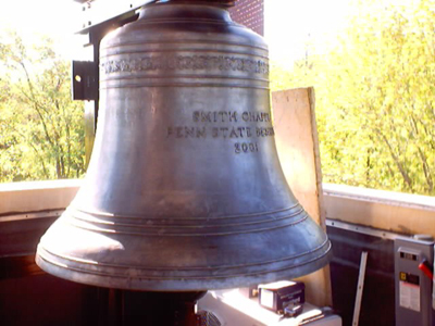 Featured Carillon Projects Penn State University, (The Behrend College ), Erie, Pennsylvania The Floyd and Juanita Smith Memorial Carillon. For the tower of the Smith Interfaith Chapel on the Behrend campus of Penn State University we have built an entirely new carillon, 48 bells total. We worked with the chapel architect, Michael Hull, of Noelker and Hull Architects of Chambersburg, PA in planning the bell chamber and playing room. The bourdon is a G3 of 1,344 lbs. and the instrument is entirely chromatic except for the lowest semitone. For this instrument we built a structural steel bell frame, and provided cast iron ball clappers operating in sealed stainless steel ball bearings, and stainless steel bell support bolts. The playing action we furnished for this instrument is designed entirely on the radial principle throughout; the instrument is furnished with a Meeks, Watson standard four octave playing keyboard and a matching practice keyboard. Electric/automatic striking on a chime range of 14 bells is provided, controlled by computer with our proprietary software. The carillon was installed in the Spring of 2002; it was dedicated on June 15th, 2002, with a recital by Gloria R. Werblow, Carillonneur, Williamsville, NY, former President of the Guild of Carillonneurs in North America. (www.pserie.psu.edu/affairs/campusmin/history.htm)