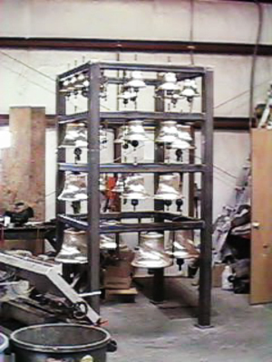Featured Carillon Projects Private Estate, Yoakum, TX For a private individual in this South Texas city we provided a completely chromatic two octave carillon of 25 bells; this instrument was fitted with an electric striking action using internal clappers. For this installation, we built a special bell frame of tubular structural steel, given a baked-on, powder coat finish in a custom color, to be an integral part of a free standing tower built locally; the roof added to the frame was also built locally. The lower part of the tower was sheathed in a patented cementitious product giving the appearance of cedar clapboard siding, but highly resistant to rot or deterioration. The computer control and remote keyboard were installed in the music room of the residence, which also featured a large Allen organ installation.