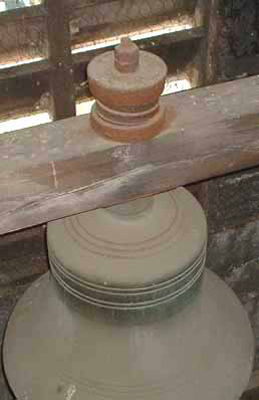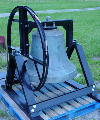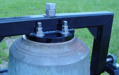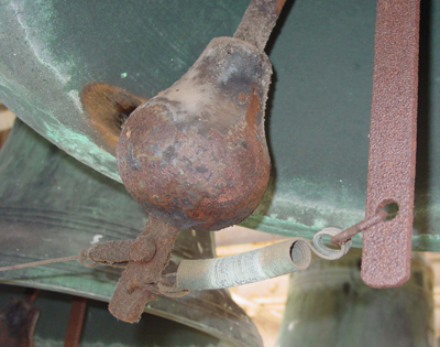When providing new hardware for swinging church bells, it is always best if the bell can be shipped to us, so that we may fit yokes, clappers and other bell hardware precisely to the bell, and fully test and adjust the bell in its new mountings. With the bell in our facility at Georgetown, we have available the large machine tools, such as the vertical boring mills, radial drills and the like, which enable us to true up bell tops to achieve the best balance, and to drill auxiliary bolt holes where needed to secure the bell to the yoke in the safest way. We can also offer tuning services to improve the tone of any bell, which is especially desirable where future additions of bells are contemplated.