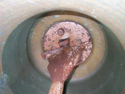Clappers are generally found worn very flat, beyond regrinding; and old worn out headpieces that permit clappers to swing sideways and increase the clapper and bell wear, while producing a faulty tone may be replaced with our superior sealed ball bearing clapper suspension headpieces with great improvement in tone and operation.